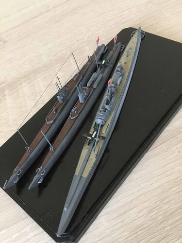 最近作ったウォーターラインシリーズの潜水艦3種、伊1潜、伊6潜、そして伊400です。 伊400は潜水空母の異名を持ち、攻撃機3機を搭載することができました。攻撃機「晴嵐」は800Kg爆装ができたから、当時の単発爆撃機としては必要充分の性能です。潜水艦の隠…